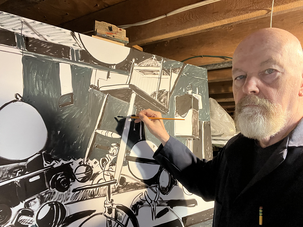 When I’m starting a painting, I look at the color of the various components and imagine how they can be placed within the composition to create interest and drama. I’m also interested in how different lighting approaches can heighten the visual experience. For example, the use of a yellow floodlight in this arrangement dramatically heightens the character of the individual objects and contributes to the illusion of depth, creating a more engaging visual experience for the viewer. Completed in 2022, this piece is oil on canvas, 36"h X 48"w, and is framed.
